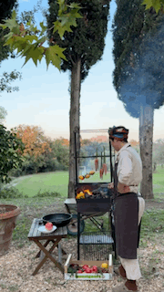 The setting changed daily — by the pool, beneath the gazebo, or on the deck overlooking the Tuscan hills. From there, you could see small chimneys releasing thin curls of smoke — like scenes from a storybook.
